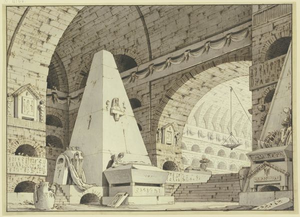 Editor: Here we have "Zerstörtes dorisches Gewölbe," a drawing made with ink, located at the Städel Museum. What strikes me most is the juxtaposition of grand classical architecture with its ruined state; it gives me a sort of melancholy feeling. How do you interpret this work? Curator: That sense of melancholy is palpable. I see this piece as speaking to the cyclical nature of power and civilization. Look at the deliberate depiction of decay – not just as a passive crumbling, but almost as an active dismantling. Editor: Active dismantling? In what way? Curator: Well, consider how ruins throughout history have been sites of resistance, both physically and symbolically. This drawing might be prompting us to question whose stories are typically enshrined in grand architecture, and whose are erased or actively demolished. It seems less an objective depiction of ruins, and more of a social critique of what is valued and what is disposable in a society. Editor: That's a really interesting point, I hadn’t considered the demolition aspect as a form of social commentary rather than simple neglect. I guess I saw it as purely aesthetic. Curator: Often, the aestheticization of ruins masks a deeper, more uncomfortable history. Are we romanticizing decline instead of confronting its causes and consequences? Editor: Thinking about the act of erasure built into this drawing has definitely expanded my understanding. It makes me think about which histories are preserved and which are conveniently forgotten. Curator: Exactly! By viewing ruins not just as remnants of the past but as active sites of cultural and political struggle, we can gain a richer understanding of both history and the present.