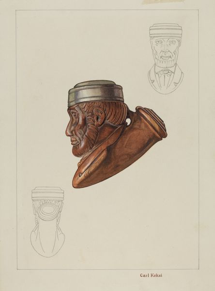 Frank Fumagalli made this watercolor drawing of a grotesque jug, likely sometime in the 20th century. I love the immediacy of watercolor, how it can be both controlled and unpredictable, much like our own expressions. Looking closely, you can see how Fumagalli layers thin washes of color to build up the form of the jug. The olive green that dominates the piece feels earthy, almost organic, contrasting with the jarring, cartoonish features. The mouth, especially, is a wonder – a gaping void lined with crimson and pearly whites, each tooth rendered with a slightly different shape. It's tempting to read all sorts of meanings into a face like this, but maybe it's enough to appreciate the sheer inventiveness of the artist's vision. There's a touch of Red Grooms to this piece, but also something all of its own. Ultimately, Fumagalli reminds us that art is a conversation, a back-and-forth between tradition and innovation, seriousness and play.