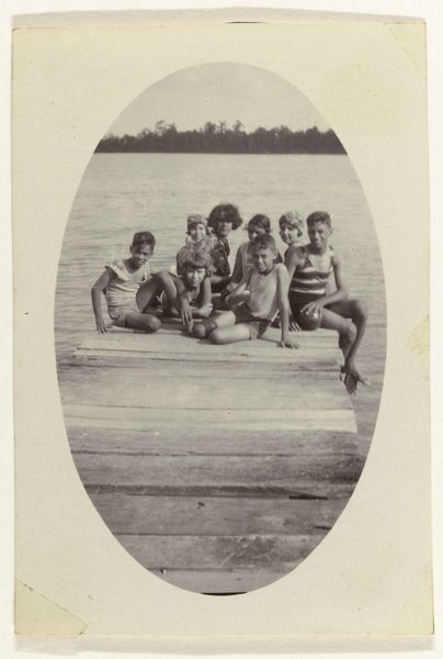 This photograph, "Groepsportret bij steiger op plantage Accaribo te Suriname", of unknown date, gives us a glimpse into plantation life in Suriname. It's one of those images where the lack of information feels like an invitation. The sepia tones give it an old-timey feel, of course, but it's the composition that gets me. The anonymous photographer chose to capture this gathering of people on a dock, somewhere between land and water. The way the figures are arranged, some sitting, some standing, creates a sense of casual formality. Look at the light, how it hits the faces and clothes, defining shapes with subtle gradations. This focus on the texture of fabric and skin creates a very human atmosphere and speaks to the act of bearing witness. The photograph invites you to imagine the stories and relationships within this group, reminding us that art doesn't need to shout; sometimes, the quietest voices linger the longest. It's a bit like a Hopper painting, you know? The stillness, the unspoken narratives… it's all there.