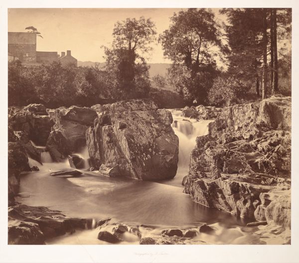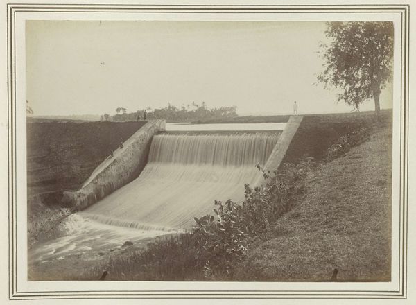 Editor: Here we have an undated photograph from sometime between 1925 and 1930, titled "Sluizen in de kali Konto bij suikerfabriek Goedo te Djombang op Java," which I believe translates to "Locks in the Kali Konto near the Goedo sugar factory in Jombang, Java". It gives me a feeling of being far removed from a natural landscape – something constructed, maybe a little unsettling? What strikes you most about it? Curator: That feeling of estrangement is key. What we see is not simply a landscape, but a colonial landscape, actively engineered to serve the sugar industry. Look at the harsh lines of the locks juxtaposed with the softer, tropical foliage. The photo speaks volumes about resource extraction and the subjugation of the environment, and, by extension, the local population, in service of a global commodity. How does the visual composition reinforce this idea for you? Editor: Well, the structure seems to dominate the composition. Even the little building looks severe. The water is being controlled. Does the very act of photographing this scene have colonial undertones too? Curator: Absolutely. Photography, especially in this era, was a tool of empire. Images like this one reinforced the idea of the colonizers' ability to tame and exploit the landscape. What might seem like a neutral document is actually deeply embedded in power dynamics. This sugar factory existed within a complex web of economic and political control. What can this image tell us about that exploitation? Editor: I hadn't really thought of it that way. It seems obvious now that you point it out, but I saw water and architecture first. Knowing that history gives the picture a whole new disturbing depth. Curator: Exactly. Art history is never separate from social history. Reflecting on colonial legacies is essential when engaging with images like this. It reminds us to always question what’s presented and whose story is being told, and at whose expense.