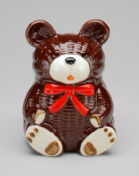 Editor: Here we have *Sleeping Santa (Large Chair)- still bank*, a ceramic sculpture made around 1954 by Banthrico, Inc. It strikes me as quite melancholic despite the typically cheery subject. What draws your eye when you look at it? Curator: Well, considering it was produced by Banthrico, known for bank novelties, my attention immediately goes to the materials and process. It’s not about fine art aspirations here, but the industrial reproduction of a festive figure for a clear social purpose – encouraging thriftiness. Editor: So, you see it less as a representation of Santa, and more as an object tied to financial practices? Curator: Precisely. This isn't some heartfelt handmade figure; it's ceramic, mass-produced, and designed to sit on a shelf or desk. The slightly worn paint and the inherent fragility of ceramic underscore its existence as a commodity, a product designed for consumption and eventual obsolescence. It connects holiday cheer with commercialization, doesn’t it? Editor: It definitely shifts the focus. So, what might the material itself—the ceramic—say about the context it was made in? Curator: The post-war boom saw a surge in affordable, mass-produced goods. Ceramic lent itself to that; cheap materials molded easily. Look at the slightly slapdash paint job – that emphasizes the factory line where profits matter more than detail. Editor: It makes me rethink the role of "craft" within Pop Art. Thanks, I’ll definitely be thinking about that during the break. Curator: Glad to bring a fresh perspective to your attention. Thinking about material means thinking about society and labor.