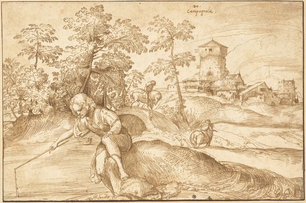 Editor: This is Andrea Schiavone's "Moses and the Burning Bush," created sometime between 1539 and 1552. It’s an ink print, and I’m struck by how the artist uses line to create such a dynamic scene, full of texture. What do you see in this piece, particularly considering the materials used? Curator: What stands out to me is how Schiavone manipulates the printmaking process itself. The relatively accessible medium allowed for broader dissemination of imagery, influencing artistic and religious understandings. Think about the labor involved in creating a print versus a painting – it’s a process that enables reproduction, touching on early forms of mass production and consumption of images. How does that reproducibility affect its status as art, in your opinion? Editor: That's interesting. I hadn’t thought about it that way. It makes it feel less like a precious object, and more like a tool. The affordability, relatively speaking, probably meant this image and the story it tells could reach a much wider audience. But does that wider audience necessarily translate to influencing society and religious views? Curator: The materiality dictates a more egalitarian availability, challenging the traditional boundaries of art’s consumption. Schiavone's print circulated within a burgeoning market for prints, alongside other images of varying subject matter and quality. It would have entered a marketplace jostling for attention and offering new means of accessing information and shaping identities. It makes one consider whether Schiavone considered that in the print making process, its accessibility. What is your final opinion? Editor: That makes me rethink the social impact of art production. I've always focused on the artistic skill and composition, but understanding the role of materials and their distribution opens up a whole new way to analyze a piece. Thanks! Curator: Indeed. Materiality and production are powerful lenses through which to understand art’s engagement with the world.