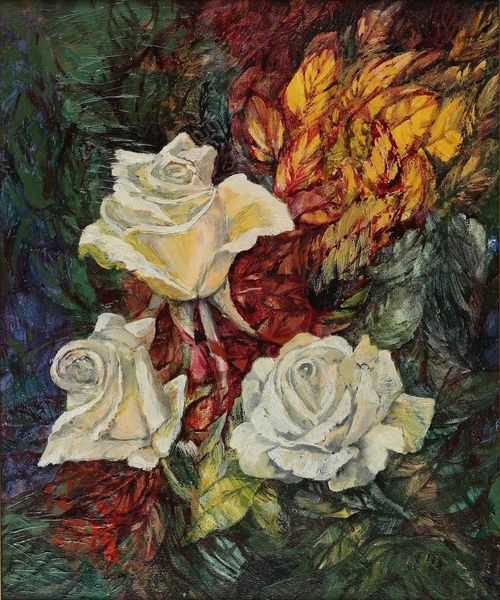 This is a painting of flowers by Pierre-Auguste Renoir, we don't know when, made in a private collection. What strikes me about this piece is the way Renoir approaches mark-making, each dab of color feels like a fleeting impression, a moment captured in pigment. Look at how the reds and yellows blend and dance together, creating a sense of warmth and vibrancy. It’s like he’s inviting us to witness the very act of painting itself. Up close, you can see the texture, the way the paint sits on the canvas. It's not about hiding the process, but rather celebrating it. Notice that one little swirl of yellow and red near the center? For me, that embodies the whole painting. It’s like a tiny explosion of color and energy, a reminder that art is about feeling, about seeing the world in a new way. In some ways, it reminds me of Monet’s approach, but with a certain earthiness, a grounded quality that makes it feel uniquely Renoir.