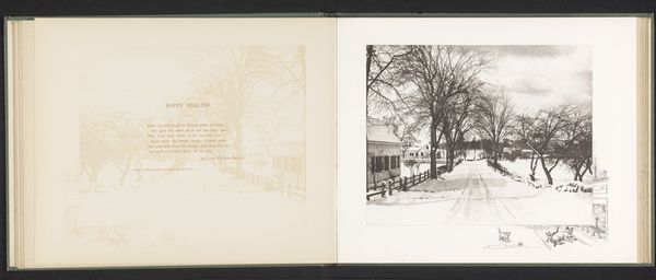 Editor: Here we have an evocative landscape simply titled “View of a Road with Trees and Houses in the Snow in New England," dating from before 1890, attributed to an anonymous artist. It appears to be a pencil drawing or print. What strikes me is how serene and almost melancholy the winter scene feels. What are your initial thoughts? Curator: What I notice immediately is the choice of subject matter – a vernacular winter scene. Nineteenth-century landscapes, especially those depicting rural life in America, were frequently used to construct ideas about national identity. The deliberate artistic choice to portray such ordinary scene says a lot about the changing tastes and the rising appreciation for simple, rural settings. Editor: So, the painting's apparent simplicity may be hiding some intentional artistic commentary? Curator: Exactly! This piece seems to be deliberately tapping into a growing sense of nationalism linked to land and simple rural imagery. Consider, who was the intended audience? The growing middle class with access to art. A scene like this offered an imagined connection to a supposedly simpler, more authentic life. Also, consider the institutional structures: how was this type of art distributed and promoted? Printmaking made it widely accessible, increasing its reach. What does the ‘realism’ tag suggest to you? Editor: It makes me wonder about accuracy versus idealization. Is this how it really was, or how people wanted to see rural New England? Curator: Precisely! The visual arts play a crucial public role. The print served less as accurate depiction of daily life but as social construction. It probably appealed to those living in urban areas who wanted to connect to something perceived to be authentic. The “realism” is more of an idealized impression. Now how does that impact your reading of the art? Editor: I guess I'll be more wary of taking it at face value and think about the story the image tries to convey. I hadn't thought of it like that at all. Curator: Understanding the socio-cultural backdrop adds another layer of depth. Considering that this landscape painting of New England snow is not "just" a landscape provides more tools in thinking through how art reflects—and shapes—our understanding of society.
