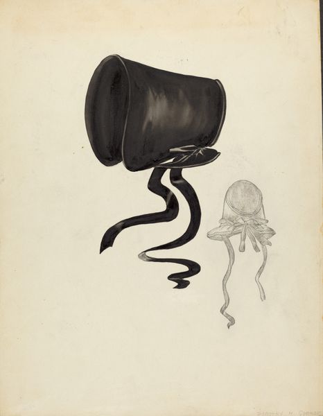 Hedwig Emanuel made this drawing of a Quaker bonnet, likely with watercolor, sometime in the twentieth century. The earth-toned palette gives the piece a calm, almost antique feeling. It’s like seeing a memory, faded but still present. The artist's delicate touch is especially evident in the subtle gradations of color that model the form of the bonnet, particularly in the crown and the ribbons. The way the artist used soft edges around the bonnet gives a sense of volume and depth, while the simple linework of the smaller sketch is really charming in its simplicity. It’s all about the process of observation and translation. I’m reminded of the work of Agnes Martin, who also used soft colors and simple forms to create works that are both calming and subtly powerful. Like Martin, Emanuel shows us that sometimes the most profound statements are made with the quietest voices. What do you think?