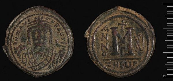 Curator: Here we have a Fals coin, minted by Nasir al-Din Artuq Arslan. It's currently housed in the Harvard Art Museums. Editor: It's striking! The patina gives it this ghostly, ancient allure. I'm immediately drawn to the contrast between the figural and calligraphic sides. Curator: Indeed. Structurally, observe the clean lines of the face versus the more abstract text. The coin compels consideration of figuration's role in Islamic art. Editor: Absolutely, and the very act of placing a ruler’s image on currency speaks to power, identity, and the projection of self within a broader socio-political landscape. What was Arslan trying to communicate? Curator: We can only speculate, but the coin's composition serves as a potent reminder of art's function in asserting dominion. Editor: It makes you think about how little things speak volumes about larger power structures. Curator: Precisely, and appreciating this tiny object refines our vision in the grand gallery.