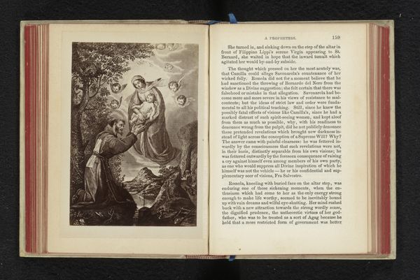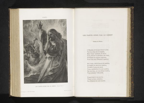 Curator: I'm drawn to this reproduction of a drawing, "Fotoreproductie van een tekening, voorstellende een preek van Johannes de Doper" (Reproduction of a drawing, depicting a sermon by John the Baptist), made before 1888 using ink engraving on paper. The scene, powerfully evokes themes of religious authority and social reform. Editor: It does seem very dramatic! John the Baptist looks so isolated, yet the crowd seems captivated. What do you see in this piece that speaks to you? Curator: This work allows us to consider the role of preachers in shaping public consciousness, especially regarding the need for radical social transformation. How might the artist's choice of John the Baptist, a figure known for challenging established norms, relate to broader societal concerns of the late 19th century? Editor: So, you're thinking about how this image might be commenting on political and social issues of its time? Curator: Exactly! Consider the historical context – burgeoning industrialization, growing social inequalities. John's message of repentance and reform could resonate with those critical of the existing power structures. What impact did the distribution of this image, as a reproduction in a book, have on who was able to see the image and absorb its message? Editor: That's a great point, making it more accessible to a wider audience! I never thought about how even the medium – being a reproduction in a book – could play a role in its political message. Curator: Thinking about the piece through the lens of its possible activist roots provides a richer understanding, wouldn't you agree? It highlights the potential of art to reflect and influence socio-political discourse. Editor: Definitely! I appreciate how you’ve connected this historical artwork to contemporary discussions around social justice. It encourages me to think more critically about art's role in reflecting and shaping society.