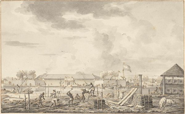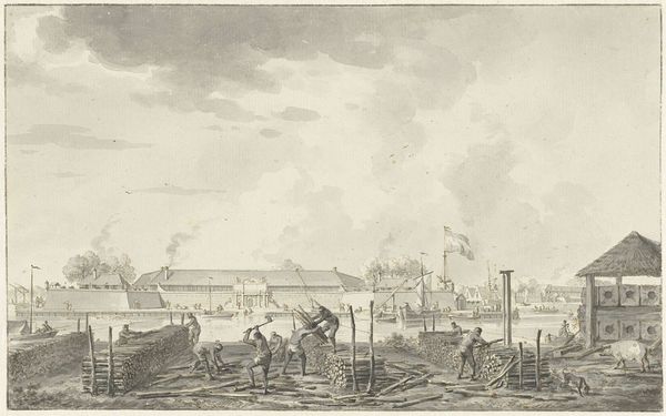 Dirk Langendijk created this print titled 'Departure of the English and Russian Troops from Den Helder, 1799' with etching. It captures a pivotal moment during the Batavian Republic, a satellite state of Napoleonic France. Consider the socio-political context: the Dutch Republic was in turmoil, caught between revolutionary ideals and imperial ambitions. Langendijk, as an artist, navigates this complex terrain by documenting a specific event. What does it mean to depict the departure of allied troops? Is it a record, a commentary, or something more? Note the detailed rendering of the soldiers and ships; the meticulousness speaks to a desire to capture the event accurately, yet the scene is also imbued with a sense of transience. The soldiers are leaving, empires are shifting. Langendijk invites us to reflect on the fleeting nature of power and the human cost of political upheaval. It's a visual document, yes, but also a poignant reflection on the complexities of identity, allegiance, and the ever-changing landscape of Europe.