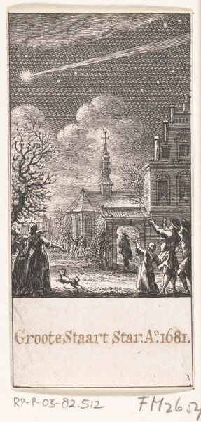 This is Simon Fokke's etching of the Hoofdtoren in Hoorn, ablaze in 1750, capturing a moment of destruction. Fire, a potent symbol throughout history, dominates the image. It evokes both dread and fascination. Consider its presence in ancient rituals – purifications and sacrifices by fire – or the mythological tales of phoenixes rising from ashes. Here, fire consumes a man-made structure, yet its chaotic dance mirrors natural forces, resonating with subconscious fears of chaos and annihilation. Even the tower's spire capped with a cross suggests a yearning for the divine, a beacon amidst turmoil, which we see, in another form, in the Christian iconography of saints holding crosses to ward off evil. The cross is juxtaposed with the raging fire, highlighting the fragility of human creation against nature’s raw power. The sheer spectacle of destruction engages viewers, reminding us of the cyclical nature of destruction and renewal. This is a progression that resurfaces, evolving and taking on new meanings through time.