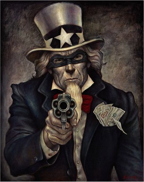 Curator: Lucia Heffernan's "Quacker 1 – Donald" certainly provokes a reaction, doesn't it? It's…unusual. Editor: Unusual is putting it mildly. It’s immediately striking, though. The juxtaposition of a duck, rendered in an almost classical portrait style, but sporting *that* hair…it’s instantly memorable. The texture of the oil paint almost emphasizes the strangeness of the subject. Curator: The piece appears to be an oil painting aiming for a satirical portrayal of, presumably, Donald Trump as a duck. Given the style and presentation, I'm led to think about how political figures are presented in portraiture—often carefully controlled to convey authority. Editor: Absolutely. The humor stems from the deliberate subversion of that tradition. Heffernan places a comical figure in the space normally reserved for serious leaders, highlighting the absurdity of political theatrics. Look, even the backdrop includes what appears to be a framed portrait of another duck. Curator: Yes, and the artist doesn’t fully commit to the absurdity; note the competent application of oil paint and the calculated palette of greys, blues, and yellows. Are we meant to simply laugh, or is there a sharper critique at play? Considering contemporary political divisions, who is this work speaking to and what is it saying about the polarization of the political landscape? Editor: I suspect it’s aiming for broader commentary about celebrity culture and political personalities. The meticulous detail applied to the duck’s “hair” and the patriotic tie serve as potent signifiers, exaggerating traits and appearances we associate with that political figure, ultimately trivializing him. Curator: Do you believe this approach undermines serious political discussion or enhances public engagement through satire? After all, art can act as a mirror, reflecting social trends, attitudes and political sentiments. Editor: I think that's where its power lies. By adopting humor, it disarms, perhaps making a larger audience receptive to engage with these touchy subjects. And maybe by portraying the ridiculous we're reminded of how absurd some power structures can be. Curator: An interesting proposition. It appears that our readings have offered insight into the playful yet pointed visual argument embedded in Heffernan's work. Editor: Indeed. “Quacker 1” encourages us to engage with serious topics by taking on a rather absurd, yet intriguing facade.