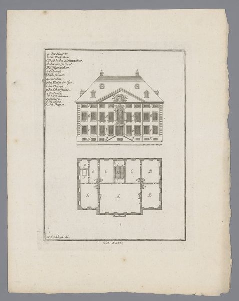 Editor: This is "Doorsnede door de breedte van de Hauptwache, te Frankfurt am Main" by Johann Jakob Samhammer, made around 1729-1730, an etching on paper. It shows a detailed architectural cross-section. I’m struck by the intricacy and almost obsessive detail – it's more than just a building; it's a representation of something, but I’m not sure what. What do you see in this piece? Curator: I see a meticulous representation of labor and material processes, meticulously etched onto the paper. Notice how the drawing prioritizes the *making* of space over aesthetic qualities; every joist and stone is rendered with an even hand, democratizing their importance. The image speaks to a desire to understand the world through its constituent parts and the physical effort involved in creating civic infrastructure. What does that suggest to you? Editor: I suppose that suggests it's not about glorifying the final building so much as understanding how it was brought into being – all the hands and effort that shaped the material. Was this a common approach at the time? Curator: Absolutely. Think about the broader context: the Baroque period, driven by emerging economies that transformed materials on a grand scale. Architectural renderings, such as this, highlight the command over natural resources and social structure needed to facilitate grand undertakings. Notice the various levels – above and below ground, each with its function and implication for human activity. What kind of human activities are you envisioning? Editor: Military activities, most probably, since this a guardhouse. Also storage, cooking, cleaning, and everyday routines needed to maintain order and power within the city. So the image tells us about the social and material life of this period. Curator: Precisely. It asks us to consider the processes of governance itself and reminds us that no idea – no matter how ambitious or grand – exists apart from the material conditions that make it real. Editor: So it’s not just about architecture; it's about understanding the labour and systems that created that architecture. That gives me a whole new appreciation for it. Curator: Exactly! By analyzing such drawings, we gain valuable insights into historical systems of labor, value and material use that would be otherwise impossible.