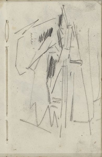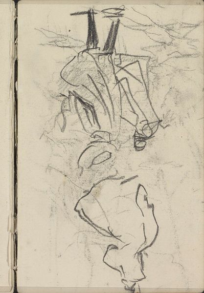 George Hendrik Breitner made this drawing, "Figuren aan een tafel," with charcoal on paper. Charcoal, with its fragile and dusty nature, allows for a quick and spontaneous application, ideal for capturing fleeting moments. Looking closely, you can see how Breitner used the side of the charcoal stick to create broad, textured strokes, rapidly building up the figures and their surroundings. The smudged areas, achieved with a finger or cloth, suggest movement and atmosphere, adding a sense of immediacy. The economy of the medium aligns with the gritty realities of urban life, and Breitner's commitment to capturing the everyday lives of ordinary people in Amsterdam. The rough texture of the paper further emphasizes the drawing's raw and unrefined quality. By embracing these materials and techniques, Breitner elevates a simple sketch into a powerful social document, blurring the lines between fine art and the realities of lived experience.