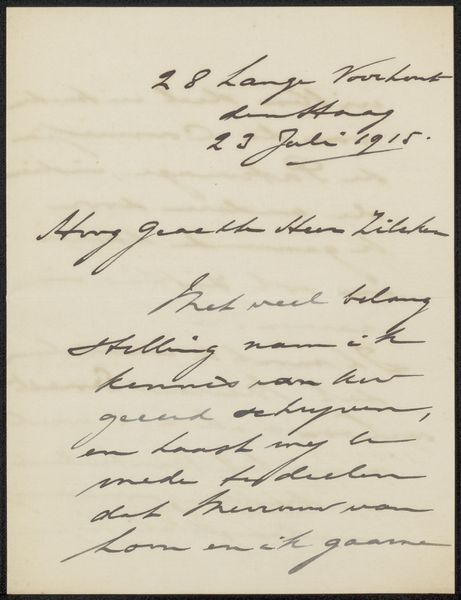 This is a letter to Jan Veth, written by jonkheer Jan Six in Amsterdam. Though undated, we can place this letter within the late 19th to early 20th century, a period marked by significant shifts in social structures and artistic expression. Six, part of the Dutch nobility, engages here in a written dialogue, a medium that at the time reflected a certain class and intellectual privilege. The letter itself becomes a conduit for ideas, emotions, and perhaps, power dynamics. Consider the intimacy of a handwritten note in an era defined by rigid social norms. What secrets, what vulnerabilities, are shared between these two men? The act of writing and receiving such a letter invites us to reflect on the personal and historical context of communication. How does this form of correspondence shape their identities and relationships within a changing world?