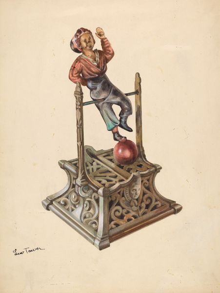 Ruth Abrams created this watercolor painting of "Jack, the Nimble Juggler," capturing a figure suspended between animation and stillness. Abrams, living through an era marked by significant shifts in cultural identity and artistic expression, invites us to consider the narratives we construct around performers. The juggler, traditionally a symbol of entertainment and skill, is here rendered with a vulnerability that prompts questions about the person behind the performance. Are we seeing a celebration of talent, or a commentary on the strings that control us? The use of watercolor lends a delicate, almost ephemeral quality to the figure, enhancing the sense of fragility. Through the character of "Jack," Abrams touches on the complex interplay between visibility and control. We are left to wonder about the stories and the societal expectations that shape the roles we play.