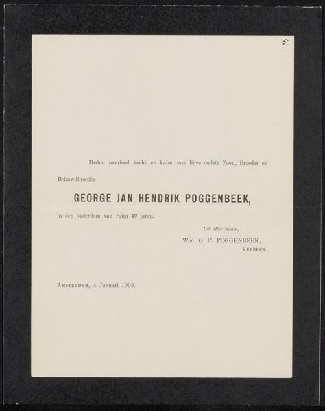 Editor: Here we have a print from 1937 titled "Historische documenten en illustraties van de verloving en het huwelijk." It's essentially a poster announcing the marriage of Princess Juliana and Prince Bernhard. I find the typography really striking. What draws your eye when you look at it? Curator: I'm immediately drawn to the interplay of typeface and texture. Notice the way the blocky, sans-serif font of the title contrasts with the more delicate, almost handwritten, quality of the names below. What does this juxtaposition communicate to you? Editor: I suppose it highlights the tension between the formality of the event and the personal nature of the relationship. But I'm not sure about the materiality – the color seems aged, almost faded. Is that intentional or circumstantial? Curator: Observe how that “aged” quality – let us call it “patina of time”– imbues the work with a sense of historical gravitas. The paper’s hue and texture, the fading of the ink – these aren’t merely imperfections; they actively contribute to the piece’s meaning. They speak to the passage of time and the enduring nature of history itself. Notice too, the columned layout of the names and titles. Editor: So you're saying the perceived decay is part of the artistic expression? Curator: Precisely. It elevates the work beyond a simple announcement to something that reflects the very nature of history and memory, which is quite appropriate for a piece commemorating a Royal Marriage. How does considering this transformation impact your interpretation? Editor: It completely changes my perspective. I initially saw it as just an old poster, but now I see the "imperfections" as intentional and adding another layer of meaning to the piece. Curator: Indeed. And by carefully examining these intrinsic visual elements, we gain a richer understanding of its complexities. Editor: Thank you! I will definitely look more into typeface, textures and color of other prints to discover meaning behind choices that I perceived previously as irrelevant.