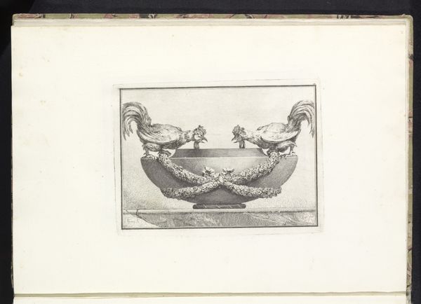 This is Benigno Bossi's "Pot met een schildpad als deksel," or "Pot with a Turtle as a Lid," made sometime in the 18th century. Bossi, who lived from 1727 to 1792, lived in an era defined by the Enlightenment's focus on reason and scientific observation. Bossi's drawing stands out for its whimsical departure from the period's emphasis on order and rationality. In it a turtle perches, rather precariously, atop a teacup. The teacup, an object of social ritual, is here crowned by an animal that symbolizes longevity. What a strange combination of nature and culture, domesticity and the wild. This drawing might invite you to consider how we impose our human desires and ideals onto the natural world, or perhaps it's just a simple, playful moment, a break from the seriousness of life. Think about how the piece makes you feel – amused, puzzled, or perhaps even a bit melancholic. The beauty of Bossi's work lies in its ability to evoke such personal responses, while also offering a glimpse into the cultural values of its time.