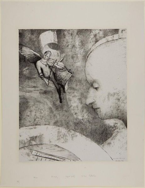 Odilon Redon created "L’Art Celeste," or "Celestial Art," using lithography. In this print, we see a winged figure playing a stringed instrument alongside a profile of a contemplative, unearthly figure. The angel motif, a visual messenger of the divine, echoes across time. We see this same motif throughout antiquity and the Renaissance in numerous forms, from the gods of Olympus to Christian iconography. Here, however, Redon presents the angel not as a symbol of religious authority, but as a conduit for the power of artistic inspiration, adrift in a dreamlike state. The emotional weight of this image lies in the subtle contrast between the ethereal angel and the grounded profile. It speaks to the power of art to transport us. The motif emphasizes a collective yearning to reach beyond the mundane and connect with deeper realms of existence.