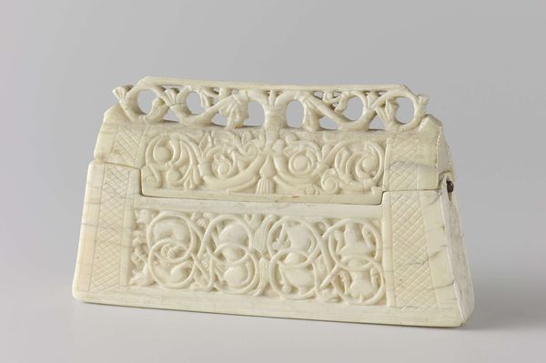 Editor: This is "Tussenzetsel van wit kant," or "Insertion of White Lace," made around 1920. It's a beautiful example of fibre art. The detail is so intricate! What can you tell me about it? Curator: This piece opens a window into the world of textile production and its gendered history. Lace-making, traditionally a female occupation, often provided economic independence but also came with exploitation and limited social mobility. Consider the intense labour involved in creating such delicate patterns. Who made this? What were her working conditions? What socioeconomic factors might have been in play? Editor: I hadn't thought about the maker, just the finished object. So, the beauty of the lace contrasts with potentially harsh realities? Curator: Exactly. The decorative-art style can be deceptive. Think about the patterns, too. What stories do these repeating motifs tell? Are they purely aesthetic, or do they represent something deeper about the society that produced them, perhaps aspiration or confinement? How can we read its repeating forms through the lens of feminist theory? Editor: It makes me consider the lives of women in the 1920s and the artistry they poured into these crafts, whether out of passion, or necessity. Curator: And the politics embedded in those crafts! Recognizing that labor and understanding those social contexts are key to truly seeing this piece. Editor: I'll never look at lace the same way again.