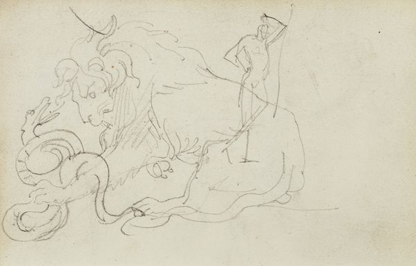 This drawing, *Et par krigere dræber en nøgen mand, som de finder i samleje med en kvinde*, was made by Nicolai Abildgaard using pen and brown ink on paper. The stark contrast created by the brown ink against the blank paper results in a raw image. The artist's use of simple lines defines form and musculature, and the composition depicts a brutal event. Abildgaard was a leading exponent of neoclassicism, so it's important to remember that drawings like this were often made as preparations for larger paintings. It's a quick way of planning out a composition. Though quickly executed, the drawing hints at a wider political context, as the artist has chosen to portray a moment of violence rooted in social transgression. Consider the power dynamics implied in the image, and the labor that would have gone into creating the final painting. It is a reminder that even preliminary sketches can reveal an artist's worldview. Ultimately, the meaning of this artwork is not just in its subject, but in the materials, the making, and the historical context in which it was created.