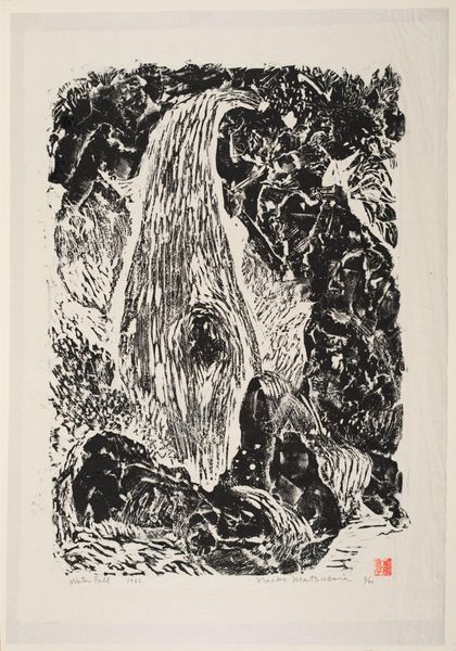 Curator: Editor: This hanging scroll, "Landscape with a Solitary Hut" by Yosa Buson, from the 1760s, is rendered in ink and watercolor. The dwelling is nestled rather precariously! What do you make of the symbolism here? Curator: I'm immediately struck by the intentional contrast between the imposing natural landscape and the humble human presence. Consider the historical context: this was a time of social stratification and control. The lone hut, almost swallowed by the immensity of nature, suggests a deliberate withdrawal, perhaps even a critique of the dominant power structures. Does the image evoke a sense of escapism or resilience to you? Editor: It definitely speaks to the desire for freedom and perhaps self-sufficiency. But I’m curious about the almost monochrome palette. What statement do you think that makes? Curator: The limited palette—the greys and blacks of the ink—emphasizes the spiritual and intellectual pursuits over material concerns, aligning with Zen ideals of simplicity and detachment. How do you see this playing into the broader conversation about individual versus society? Editor: It shows a push against materialism and authority! The deliberate simplicity emphasizes inner growth against outside expectation, especially for marginalized populations like artists. That gives me a lot to consider! Curator: It certainly invites a dialogue about seeking personal liberation within systems that often try to define or confine us. Editor: I appreciate the historical and social dimensions you've highlighted. I initially saw the hut as a quaint element, but now I recognize its powerful commentary. Curator: And I appreciate your fresh perspective. It is exciting to consider how its visual language might still spark contemporary actions today.