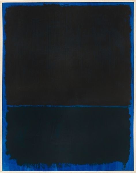 Editor: Here we have William Turnbull's "8" from the Tate Collections, a field of deep, almost overwhelming blue. What strikes me is how this simple color field evokes such a sense of depth. How do you interpret this work? Curator: The overwhelming blue hints at a visual language rooted in ancient symbolism, invoking divinity, truth, and the subconscious. Does this resonate with you, given the period in which it was made? Editor: I can see that. It feels very meditative. Like staring into the ocean. Curator: Precisely. And consider that Turnbull created sculptures as well. Could this "8" be a flattened, two-dimensional attempt to capture the essence of form and space, a symbol referencing a deeper, unseen reality? Editor: That's fascinating! I hadn't thought of it in relation to his sculpture. Thanks! Curator: My pleasure. It highlights how color can function as a powerful icon in its own right.