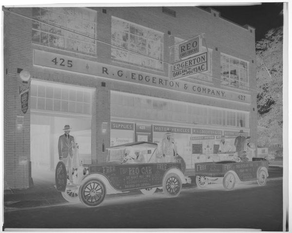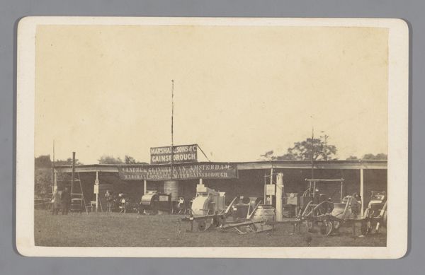 Editor: Here we have "Scranton & Lehigh Coal Co.," a gelatin silver print photograph from 1918. The industrial architecture and vintage vehicles give the image an austere feel. I'm immediately drawn to the strong vertical lines and the contrast between the solidity of the buildings and the grainy sky. What formal elements stand out to you in this piece? Curator: The interplay of light and shadow across the architectural forms is quite compelling. Notice how the photographer uses light to emphasize the geometric shapes. The facade becomes a study in planar surfaces, and we might read the receding planes of the buildings to represent an effort to capture spatial depth using a two-dimensional medium. Consider how the various structures create a hierarchy within the composition itself. Editor: The way the signage is integrated into the architecture is also fascinating. Does the text function primarily as a representational element, or something more? Curator: Indeed. We can see it as another planar component that helps the photograph convey information to its viewers. Further, the deliberate cropping that results in such symmetry is indicative of Modernist aesthetic priorities; can you identify a principle that the photographer employed when deciding what to crop and what to leave intact? Editor: Perhaps the choice was made so that it could resemble the cityscapes emerging in paintings? The text also serves as an indicator of cultural concerns in 1918. Thinking about the formal structure of the image, how does it convey meaning beyond the representational level? Curator: An astute question. The photographer skillfully guides the viewer's gaze using sharp lines to reveal the logic of geometric form while creating contrast and texture across the planar surfaces of the facade. Thank you for highlighting the dynamic interplay between content and composition; it opens a world of possibilities.