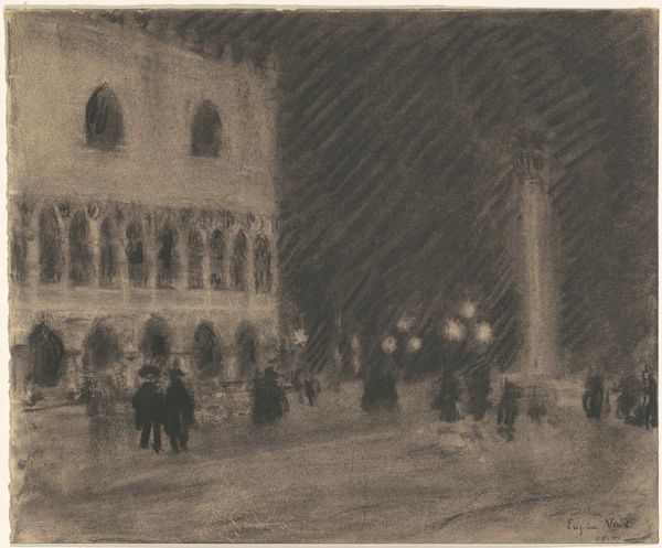 Eugène Vail made this drawing of the Palazzo Ducale and the Piazzetta, in Venice using what looks like charcoal or maybe conte crayon. It's all about atmosphere, a process of building up soft, smudgy tones to create a hazy, dreamlike impression of the city. Look at the way the light seems to glow from within the buildings, reflected in the water. Vail hasn't laboured to capture every detail, but rather focused on the emotional essence of the place: its mystery, romance, and quiet grandeur. The marks feel tentative, searching. It's like he's trying to capture a fleeting memory, a whisper of Venice rather than a precise record. This reminds me of Whistler's nocturnes, those hazy, tonal paintings of London at night. Both artists were interested in capturing a sense of place through mood and atmosphere, embracing ambiguity over clarity. It's a reminder that art isn't about perfect representation, but about feeling and seeing in new ways.