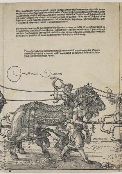 Editor: Here we have an engraving from 1581 by Guglielmo Du Choul, taken from a book entitled *Discours de la Religion des Anciens Romains…Discours sur la Castramentation et Discipline Militaire des Anciens Romains...* currently held at the Metropolitan Museum of Art. The subject matter looks to be some kind of military leader on horseback; its lines give the impression of great motion despite its static nature. How would you interpret this work? Curator: This engraving offers a fascinating glimpse into the Renaissance fascination with classical Rome. Note how the rider’s figure consciously emulates Roman statuary. The inclusion of the eagle atop the staff is not arbitrary. It's a powerful emblem of Roman authority, a visual shorthand instantly recognizable to viewers of the time. Editor: It’s interesting how directly it references those classical roots, especially using such overt symbols. Curator: Precisely. Consider also the horse itself – it’s not simply a mode of transport, it's a symbol of power, virility, and conquest, all core elements of the Roman self-image. This engraving seeks to tap into and perpetuate that image. What do you think the intended audience was meant to understand? Editor: So it is about transmitting a visual language of power. Maybe the intent was to teach about, or perhaps even emulate, the perceived virtues of the Roman Empire? It’s like a manual. Curator: Indeed. This engraving served to perpetuate the enduring power and symbolic language of ancient Rome in early modern Europe. What else have you discovered? Editor: I now appreciate the conscious layering of symbolism to evoke and almost resurrect a sense of Roman imperial might.