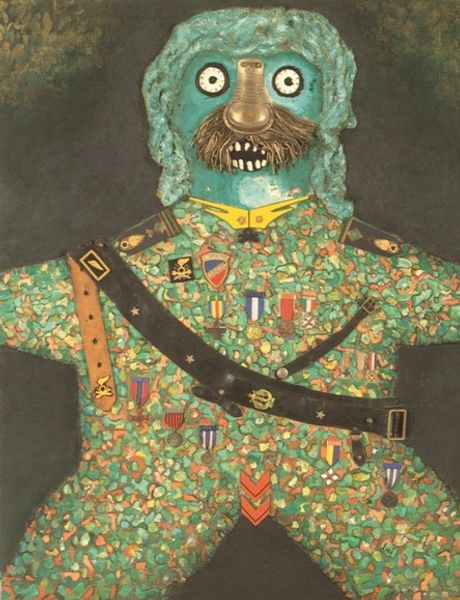 Shaw has copied Hans Holbein the Younger’s portrait of Jane Seymour, the third wife of Henry VIII, and playfully embellished it with dramatic explosions and animal features. What may appear as a desecration is regarded by Shaw as a homage that emphasises how this historical figure has been supplanted by her iconic portrait. ‘Henry and Holbein have been dead for centuries and so will we pass away, but the symbols remain’, he has said. Gallery label, September 2008