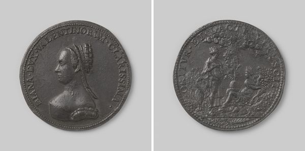 This is a cast medal, a portrait of Margaretha van Parma and Ottavio Farnese van Parma, made by an anonymous artist. The medal is made from cast lead, and has two sides - the conjoined portraits of Margaretha and Ottavio. It is a masterful work of casting and chasing, a skilled tradition often seen as lesser, when compared to sculpture. The mold was likely made from a master model, capturing the contours and features of the sitters. The lead-based alloy would have been heated to a molten state, poured into the mold, and allowed to cool. The rough casting would then have been refined by a highly skilled artisan, with careful chasing to sharpen the details. The choice of lead is not accidental. The metal is easily cast and has a satisfying weight in the hand, but it is also base and dull. Here, the material is ennobled, and elevated, by being used for high art. The piece serves as a reminder that craft skills have always been essential to the production of art and design, challenging the rigid boundaries between these fields.