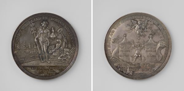 This medal, made by Theodorus Everardus van Berckel, commemorates the Peace of Aachen. One side depicts Mars, Roman god of war, with a burning torch, poised above a townscape; above him is inscribed "Minacia Martis," the threats of Mars. The torch is a fascinating symbol. In antiquity, it signified life, regeneration, and hope, and was commonly used in wedding ceremonies. Yet here, in Mars' hand, it represents destruction and conflict. This duality reminds me of similar shifts in other symbols throughout history. Consider the serpent: once a symbol of healing and wisdom, it later became associated with temptation and evil. The medal’s other face presents us with Pax, the goddess of peace, holding an olive branch and cornucopia, symbols of peace and prosperity. Here, we witness a transformation, the torch of war subdued, replaced by emblems of abundance and tranquility. The images engage us on a visceral level, tapping into collective memories of war and peace, hope and destruction. The continuous evolution and reinvention of symbols speak to the enduring human struggle to understand and shape our world.
