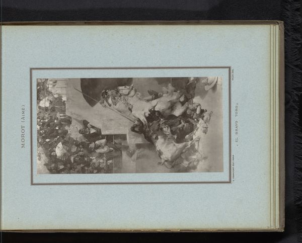 Curator: This print from 1897 is called "Gezicht op La fontaine de Saint-Jean in Fribourg", or "View of the Fountain of Saint-Jean in Fribourg." It was created by Ernest Lorson, using photography as the medium. Editor: It possesses an interesting quietude. A somber quality emanates from the monochrome print, and that, coupled with the almost blurred effect, renders an intensely historical atmosphere. Curator: Indeed. Pictorialism, as a style, favored soft focus and atmospheric effects, striving for an aesthetic kinship with painting and etching. In terms of iconography, water, especially from a fountain, often symbolizes purification, life, or even the subconscious mind, especially given that Fribourg’s fountain speaks of renewal through Saint John the Baptist, thus holding very rich cultural significance. Editor: And its placement becomes a site of gathering, perhaps speaking to class divides as it's public and free, serving multiple social stratifications. Did Lorson intend to comment on social classes co-existing or was the photograph to evoke feelings of nostalgia about a disappearing old European tradition, when modernism gained terrain in Europe? Curator: Lorson’s stylistic choices definitely speak to a modernist interest that can embrace pictorial elements in this instance. The photograph gives me the sensation that Loroson wanted to communicate something symbolic using his contemporary means; not to reproduce a perfect landscape, but an ethereal view that embodies, or speaks about time, tradition, religion, and modernity itself. Editor: Time... it's fascinating how such still images become active agents within historical discourse. Consider the environmental elements in relation to how water becomes increasingly precious. These are resources we can look at anew using a modern, twenty-first century lens. Curator: Exactly! By observing how past societies structured their lives and valued resources like the communal water source depicted, it can offer tangible points of entry into debates about distribution and sustainability today. It connects past cultural value systems with current environmental and ethical exigencies. Editor: I agree completely! There's always so much more that we can unravel about an artwork. Curator: This makes you consider that a true study is a palimpsest in which ideas and meanings always resurface through an inexhaustible dialogue!