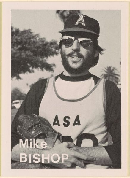 Mike Mandel made this photograph, "Bob Flick," as part of a larger project which reflects the cultural landscape of the 1970s in America. Mandel's work plays with the familiar visual language of baseball cards, a cultural phenomenon that transcends mere sport. These cards typically celebrate athletic prowess, but here, Mandel turns the lens towards ordinary individuals. "Bob Flick" challenges traditional notions of celebrity by presenting an everyday person in a format usually reserved for sports icons. During the 70’s there was a cultural shift, with movements which questioned established norms. Mandel's decision to feature regular folks can be seen as a commentary on the decade's changing values and a celebration of everyday life. By mimicking the style and presentation of baseball cards, he invites us to consider the value we place on fame. The work resonates emotionally, provoking questions about identity, representation, and the stories we choose to tell about ourselves and others.