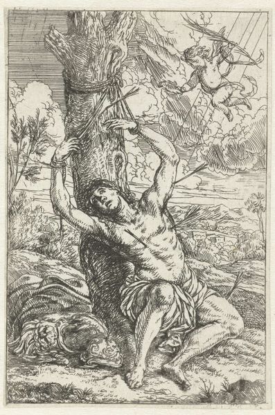 Marcantonio Bellavia made this small print, Diana en Pan, sometime in the 17th century. It’s an etching, a printmaking technique that relies on acid to bite lines into a metal plate. The image is then inked and printed, leaving behind the crisp lines we see here. The process is significant. Printmaking allowed for the wide distribution of images, democratizing art in a way never before possible. Instead of being unique objects made of precious material for a wealthy patron, images could be reproduced and distributed far and wide. Notice the way the lines describe the musculature of Pan, and the drapery of Diana. This was all achieved through carefully controlled actions. Bellavia would have used various tools to achieve light and dark effects, and different depths of the lines. The story of Diana and Pan gains new dimension when we consider the print’s own story. It is a story of accessibility and the changing role of the artist in a world increasingly shaped by commerce and wider consumption.