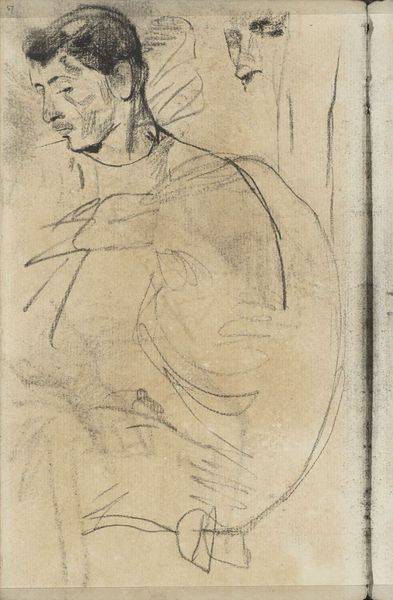 Curator: Standing before us is Cigoli's drawing, "Heilige Franciscus op het ogenblik van de stigmatisatie"—"Saint Francis at the Moment of Stigmatization," created sometime between 1569 and 1613, using pencil. It’s a study, a preparation perhaps, for a larger work depicting this profound moment. Editor: Immediately, I’m struck by the vulnerability it portrays. It’s not the triumphant ecstasy I might expect; there’s a subtle yearning etched into his face, a fragility emphasized by the sketchy lines of the drawing itself. Curator: Absolutely. The loose lines contribute to that raw emotional feel. We’re not presented with a polished finished piece, but rather a glimpse into Cigoli's artistic process, and in turn, a more intimate encounter with the saint. St. Francis was an incredibly popular figure, embodying themes of poverty, devotion, and a direct relationship with the divine. Editor: And you can see how Cigoli plays with that divine connection here. The upturned gaze, the almost pleading hands, create a tangible sense of reaching out, of receiving. The rosary hanging down is rendered with particular attention. Curator: The details matter. The Franciscan order placed significant emphasis on simplicity and devotion to Christ’s Passion, so that rosary, the rough habit, these are signifiers intended to reinforce the ideals of Franciscanism. Think about the institutional patronage at the time; it's unlikely a work like this would exist without that sort of support, pushing those agendas forward. Editor: Which almost makes the vulnerability all the more poignant. He's representing an ideal, a religious doctrine. But simultaneously, in this fleeting moment, there is humanity. It transcends pure religious symbolism for me. I like how the angel's face appears subtly in the upper background; almost an afterthought. Curator: The quick sketches lend a dreamlike quality. In this state, Francis doesn't feel heroic. The sketch leaves room for ambiguity, prompting the viewer to reflect on Francis's devotion as the impetus for an intense experience. Editor: It makes you wonder, doesn't it, what compelled Cigoli to capture this moment with such… intentional rawness? It has staying power, the emotional resonance, it’s a captivating work of art, irrespective of the belief systems at play. Curator: Precisely. Whether viewed through the lens of faith, art history, or purely personal emotion, Cigoli's drawing leaves an undeniable mark.