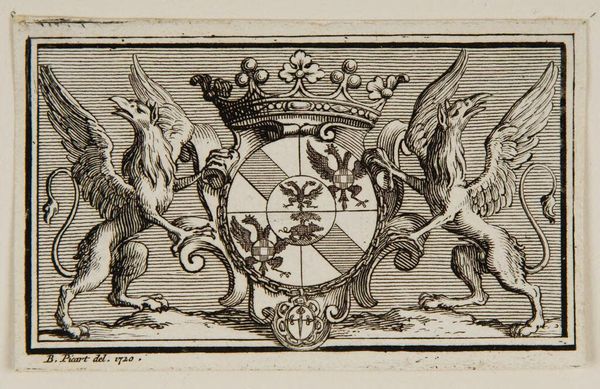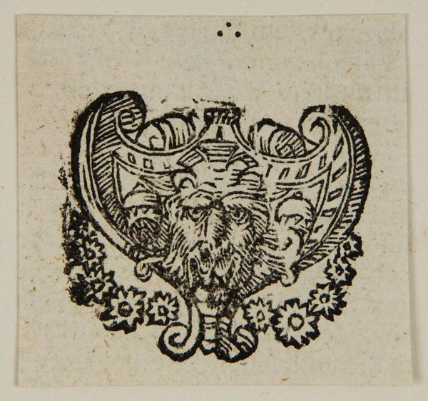 Curator: Let's turn our attention to "Tail-piece," an intriguing, anonymous print in the Harvard Art Museums collection. Editor: Woah, this strikes me as playfully grotesque, like a heraldic beast dreamt up after too much wine. Is that a lion with antlers? Curator: Indeed. Note the symmetry, the linear precision typical of early printmaking. The intricate interlacing and the heraldic elements demand a structural reading. Editor: For sure, it is carefully constructed—but the beast itself feels rather wild. It's a fascinating tension. Almost like a visual pun. Curator: Precisely. Its aesthetic economy belies the rich cultural context it undoubtedly inhabited. Editor: Makes you wonder about the artist's mood that day, doesn't it? A wink in ink. Thanks for pointing it out.