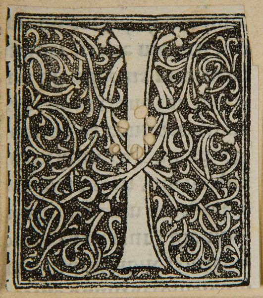 Editor: This intriguing piece, "Initial D," by an anonymous artist, presents a letter enmeshed in intricate foliage. What symbolic weight do you feel it carries? Curator: The letter itself, embedded within such dense, organic forms, speaks to a cultural memory of illuminated manuscripts. The initial marks not just a word, but a portal, wouldn't you agree? Editor: Yes, it suggests a gateway to a story or a new beginning. How does the interplay of black and white contribute? Curator: The stark contrast heightens the symbolic tension. Light, knowledge, emerging from the darkness of the unknown. It evokes a sense of revelation, doesn't it? Editor: Absolutely, and it makes me think about the power of words and their origins. Curator: Precisely! The image reminds us that even simple forms hold complex cultural echoes.