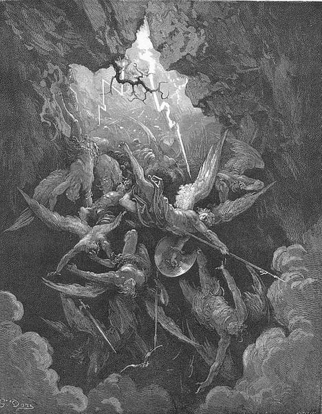 Gustave Doré created this engraving, titled "Paradise Lost," during the Victorian era, a time of significant social and religious change. Doré’s illustration visualizes John Milton's epic poem, dramatically portraying the battle between good and evil. Note how the artist uses light and shadow to create a sense of chaos, heightening the emotional impact of the scene. Here we witness a celestial war, a contest between the divine and the rebellious. Gender dynamics are at play too: powerful male figures dominate, which reflects the patriarchal structures of Victorian society. The visual representation might spark a moment of reflection on the role of faith, morality, and power in shaping our perceptions of the world. Doré’s work serves as a reminder of the ongoing struggle between light and darkness within the human experience.