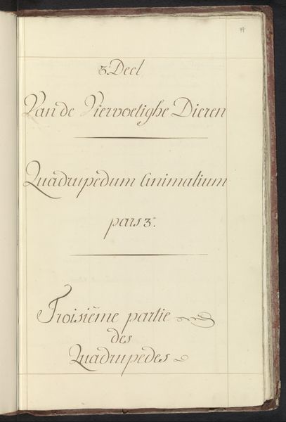 This is the title page from a 1787 album, depicting the uniforms of the Civic Guard of Amsterdam, created by an anonymous artist. The stark contrast of black typography against the aged, off-white paper creates a striking visual harmony, evoking a sense of historical gravitas. Observe the meticulous arrangement of text; the artist employs varied fonts and decorative flourishes to emphasize key words, creating a visual hierarchy that guides the viewer's eye. The use of calligraphic elements, such as the embellished ‘G’ and ‘S’, adds a layer of intricacy to the otherwise simple composition. The structural clarity of this title page can be seen as a reflection of the Enlightenment values of order and reason. This seemingly straightforward design engages with semiotic systems; the lettering acts not only as text but as a signifier of the era's aesthetic and intellectual sensibilities. The formality evident in the typeface embodies the societal structures and cultural codes of 18th-century Amsterdam.