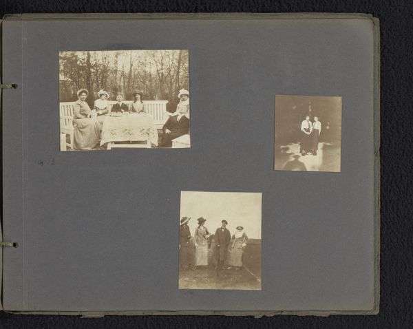 Editor: We're looking at "Gezin van Loentje Onnen in Brussel en Schaarbeek," a photographic artwork made between 1912 and 1914 by Carolina (Loentje) Frederika Onnen. It's a set of snapshots capturing her family life. There's a really personal feel to it, like glimpsing someone’s memories. What do you notice in this album page? Curator: It whispers of a time when photography was shedding its formal skin, beginning to capture the everyday with a kind of naive poetry. This isn’t staged in the grand manner; instead, it's imbued with an intimate sense of observation. Don’t you feel you’re not so much *looking* at photographs, as *eavesdropping* on stolen moments? Editor: I see what you mean. There's something informal about the arrangement on the page, too. The placement of each photograph. Curator: Yes! It echoes how we physically piece together memories. One moment snagged, then another, placed together— perhaps consciously or unconsciously. It’s the family presented almost as genre painting in photographic form, yet simultaneously deeply personal and somewhat distanced through its form as a study album page, if you follow me. It's quite curious, like a found diary. Editor: That's interesting. Like fragments of stories coming together, but still a bit ambiguous. What strikes you most about the whole thing? Curator: It’s the quiet that gets to me. No clamorous narratives, but instead this quietness of observed domestic life from so long ago. Editor: Yeah, I see it. Curator: I like that there's no narrative conclusion, do you feel that? The end of the album may just be the day someone got bored of archiving their life, like us, the viewer, suddenly stopped archiving. The real world continues. Editor: I think so, too. I was initially drawn in by the quaint aesthetic, but it really makes you consider how different generations look at similar lives with different cultural contexts and mediums. It makes you wonder about our ways of archiving things today, which is, in itself, intriguing.