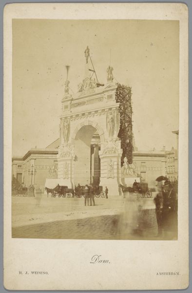 This photograph by Gustaaf Oosterhuis, taken in Amsterdam in April 1887, shows an elaborate decorated archway erected on Ferdinand Bolstraat. It commemorates the seventieth birthday of King Willem III. The image encapsulates the Dutch monarchy's attempt to cultivate a sense of national unity and popular support during a period of significant social and political change. The arch itself, adorned with greenery and flags, visually asserts a connection between the monarchy and the everyday life of the city. This kind of monumental public art served to reinforce the authority and legitimacy of the ruling house. To fully understand this image, we can research the history of the Dutch monarchy in the late 19th century. This includes the social and political dynamics of the time, and the specific institutions responsible for shaping public opinion.