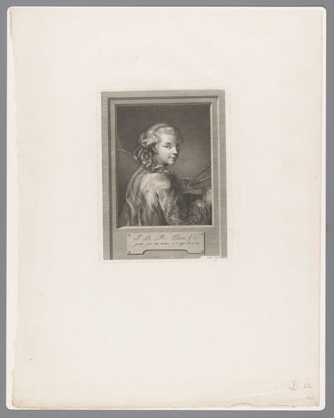 Editor: Here we have a print titled "Self-portrait in a flat cap and embroidered dress", created sometime between 1770 and 1803, and housed at the Rijksmuseum. It's an etching. The detail achieved with this medium is impressive, though the mood feels a bit somber. What catches your eye in this piece? Curator: Primarily, I am drawn to the interplay of line and tone. Note how the artist employs densely packed, short, sharp lines to define the shadowed areas, creating a sense of volume and texture in the figure's clothing and facial features. Editor: So the composition itself is part of the meaning? Curator: Precisely. The composition directs the viewer's gaze immediately to the face. How would you describe the subject's gaze? Is it direct, confrontational, or perhaps more introspective? Also, consider the deliberate arrangement of light and shadow, a technique that is common in Baroque portraiture. This use enhances the emotional depth. Editor: I think there's definitely some thoughtfulness in that stare; he seems to be pondering something, and he also seems confident. I also think it is interesting how some areas almost disappear as simple lines to show shadows, like below his lip or at his neckline, yet the contrast is compelling. Curator: You're perceptive. Notice how the minimal detail in the background contrasts with the rich textures of the clothing. This simplification isolates the figure, emphasizing his presence and psychological state. Editor: This examination makes me think about prints differently. I thought it would be all about reproducibility, but now I see how it's more than just that. Thank you for clarifying. Curator: It has been a pleasure highlighting these techniques with you. The closer we examine the individual lines, shades, and the ways that contrast creates dimensionality, the more the artwork offers itself up for analysis.