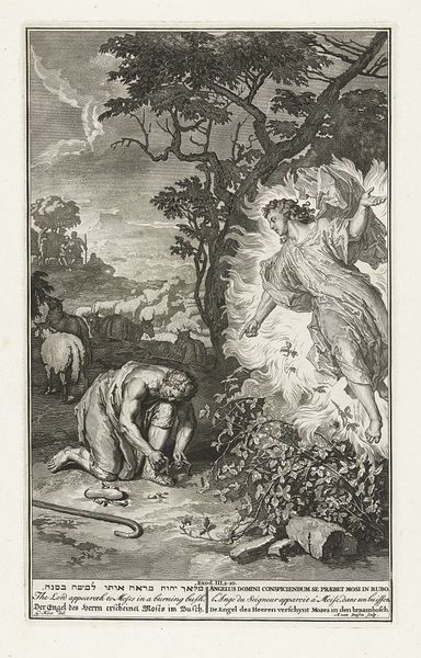 Jacob Folkema made this print, "Biddende vrouw in de natuur," sometime before his death in 1767. Look closely, and you can see the telltale signs of the engraving process: the crisp, precise lines that build up the image, all incised into a metal plate. It’s a world away from painting. In the print, a woman kneels in prayer, while a goddess rides through the clouds above. The contrast between earthly labor and divine ease is interesting here. Printmaking, in its day, was a distinctly commercial, even industrial process. This engraving could be reproduced many times over, distributing its message widely. We might therefore see it as an artifact of an early media landscape. The real labor in the image, however, is Folkema’s own. Every detail, from the leaves on the trees to the folds in the woman’s dress, had to be patiently and skillfully etched. This print is a potent reminder that even seemingly effortless images are the result of painstaking work. It invites us to consider the labor involved in all forms of artistic production.