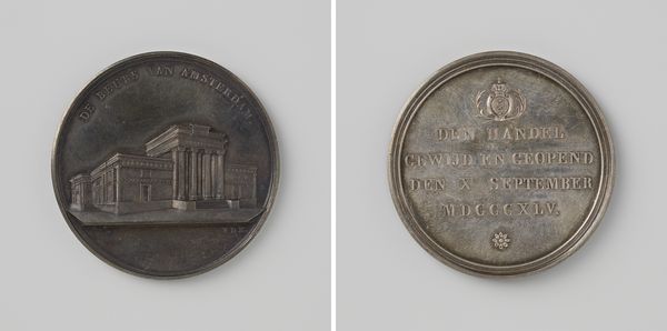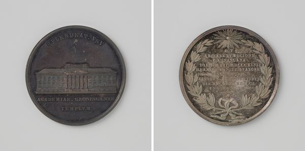 This small silver medal commemorates the opening of the University of Groningen’s new academy building. Although the artist is unknown, the medal would have been die struck, a process involving skilled metalworkers who translate a design into a precisely cut die, which is then used to stamp the image onto the metal. Consider how the medal’s material influences its appearance. The cool, reflective surface of silver lends it an air of prestige, and the medal's small size gives it a sense of intimacy. The incised lines of the architecture and text are sharp and refined, demonstrating expert craftsmanship. The making of commemorative medals has a long and interesting history. This one reflects the economic conditions and the availability of specialized labor in the 19th century. It also reminds us that art and design objects such as this can be a tangible record of a historical event. Appreciating the materials, making, and context of this medal helps us understand the role of craft and design in shaping social memory.
