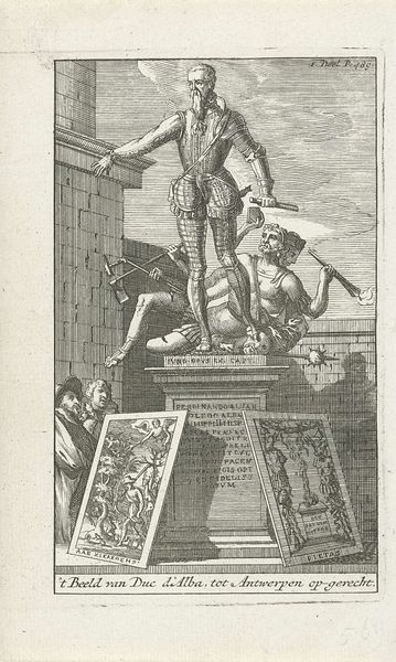 This print of a statue of the Duke of Alva was made by an anonymous artist in 1571. It's an engraving, a medium that allowed for the wide distribution of political imagery in the 16th century. Here, Alva is depicted as a triumphant military leader, standing on the backs of subjugated figures. This imagery serves as propaganda, reinforcing Spanish authority during a time of intense conflict in the Netherlands. It speaks volumes about the politics of imagery and the public role of art, presenting a very specific and self-serving view of Alva's actions. The statue and print served to cement Alva’s image in the public eye, showing a powerful figure who was instrumental in the Eighty Years' War. Studying sources like pamphlets, letters, and official records helps to illuminate the social conditions that shaped the production of this print and how the image of Alva has been shaped in cultural memory. These resources help us understand the complex interplay between art, power, and history.
