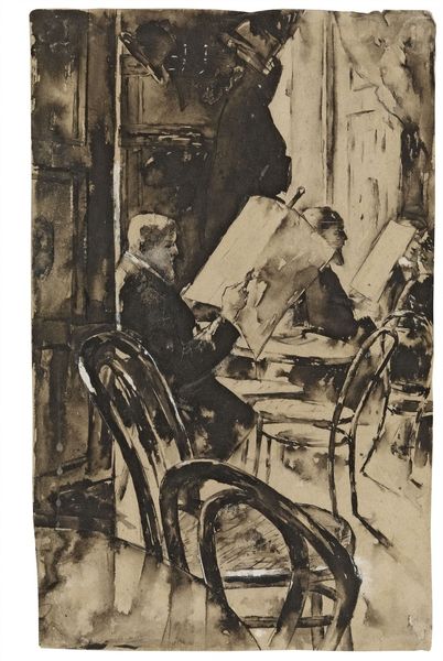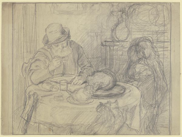 Bertha Wegmann made this drawing titled "Afternoon Tea in the Artist's Studio" with pencil on paper. As a woman artist in the late 19th century, Wegmann navigated a male-dominated art world. This intimate scene provides insight into her personal and professional life. The gathering of figures around the table suggests a space of community and intellectual exchange. Wegmann, who never married, cultivated a vibrant social circle of fellow artists. Note how Wegmann challenges conventional gender roles by depicting herself in a professional setting. The inclusion of other women artists in the scene further emphasizes a shared experience of creativity and camaraderie. By portraying these women as active participants in the art world, Wegmann challenges traditional representations of women as passive muses or domestic figures. Wegmann provides an alternative narrative, one that celebrates the contributions of women to the arts. It's a celebration of community, creativity, and the breaking down of barriers in a world that often tried to keep women out.