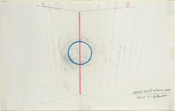 Editor: Here we have Hilma af Klint’s "Atom Series, No. 8" from 1917. It’s rendered with colored pencil, watercolor and ink on paper, and I find its geometric forms both intriguing and a little perplexing. What do you see in this piece, beyond the obvious geometric shapes? Curator: Beyond the geometric abstraction, I see a powerful commentary on the relationship between spiritual and scientific understanding. Af Klint, working at a time of immense scientific discovery and societal upheaval, positioned her art as a means of exploring unseen forces. How does the inscription that accompanies the image change your understanding of the work? Editor: The text references an atom on the “ether plane.” Knowing her interest in spiritualism, I’d guess that's key? Curator: Exactly. Af Klint was part of a burgeoning spiritualist movement. This movement often sought to reconcile scientific discovery with spiritual beliefs. It wasn't uncommon for artists and intellectuals to explore the unseen world, seeking a deeper understanding of the universe. Do you see connections between this work and early 20th century movements like Theosophy or Anthroposophy? Editor: It seems the atom isn’t just a scientific concept here. It's charged with spiritual significance. Perhaps these different colors within these geometries represent diverse energies at play. Curator: Precisely! And consider the public role of art at this time. Af Klint was working outside the mainstream, and deliberately withheld much of her work from the public, believing that society wasn’t ready for it. This begs the question of how art's reception shapes its meaning. Editor: It’s amazing to see her blending science and spirituality – a very unique take on geometric abstraction and symbolism! Curator: Indeed. This piece really exemplifies how socio-political and intellectual currents deeply impact an artist's vision, pushing them to explore uncharted territories in both form and content.