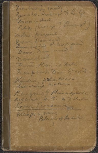 Curator: The Rijksmuseum is home to a very special object: a sketchbook filled with 38 leaves, created by George Hendrik Breitner sometime between 1892 and 1900. Editor: A sketchbook… right. My first thought? Intimacy. You know, like peeking at someone’s innermost thoughts. The scrawled writing gives it such a personal feel, doesn’t it? Almost secretive. Curator: Precisely. And that handwriting, rendered mostly in pencil, hints at the immediacy of Breitner's creative process. But, look closer. We are witnessing, on some level, a convergence of influences. We see not only impressionistic impulses, but clear visual threads connecting back to the Dutch Golden Age. It reveals an artistic heritage that lingers beneath the surface. Editor: Hmm, "heritage," "impulses" – big words! To me, it looks like…jotting, really. Like a mental download happening right there on paper. Quick impressions meant to be captured, almost brutally, before they vanish. Very raw. Curator: True, Breitner does embrace a certain kind of raw aesthetic, but notice also the consistent use of certain motifs: self-portraits appear among urban street scenes. These self-portraits serve as more than mere representations; they underscore the artist's individual experience amidst a rapidly changing city. Editor: I dig it! So it’s not just “grab a quick sketch," but "grab a sketch to know yourself." Like, finding identity in a whirlwind. I keep thinking of this like little breadcrumbs of feeling – left for us to find… What do you think that says about our role in looking at it? Curator: An apt metaphor, breadcrumbs. It casts us, perhaps, as both art historians piecing together the narrative and fellow artists reflecting upon the traces of the creator in these pages. Editor: Makes you think twice about your own scribbles, doesn’t it? Curator: Indeed. It adds a strange poetry to a very ordinary object.