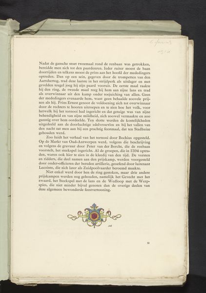 This is a printed text page regarding Vlaardingen in Makassar, made by Jean Baptiste Ambroise Marcellin Jobard. This artwork is essentially a colonial document, capturing impressions of Celebes, now known as Sulawesi, Indonesia. The text reveals a mix of observations, from the lives of the local "Indians" to monuments of English officers, who died in battle. Jobard’s description of local culture is framed by his European perspective, reflecting the power dynamics inherent in colonial encounters. The mention of the ship S.M. l’Evertzen hints at Dutch naval presence and its role in the region. The narrative constructs a sense of the exotic and the foreign but also highlights the colonial powers asserting their presence. It invites us to reflect on whose stories are told, and whose are omitted, in the grand narratives of history.