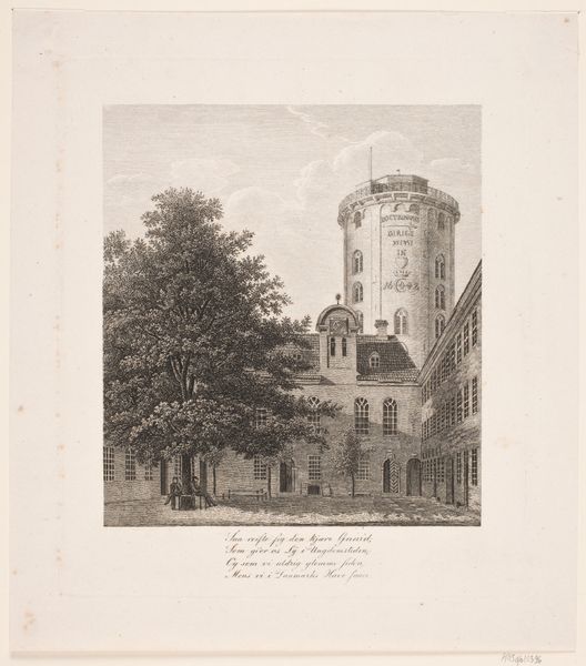 Editor: This ink and watercolor drawing on paper from around 1826-1831 shows the former court chapel of Breda Castle. It's striking how the detailed architectural rendering is juxtaposed with the more loosely sketched trees. What aspects of the image stand out to you? Curator: What I see is a layering of materials, not just in the artwork itself, but in the very fabric of what it depicts. The castle is built of brick and stone—materials extracted, shaped, and laid by laborers. The drawing, similarly, is the product of extracting pigments, processing paper, and the skilled hand of the artist, all within a specific economic structure. How does this reflect the growing urban and industrial landscape? Editor: That’s a good point! I hadn’t considered the act of image-making itself as a form of production. Is the romantic style a reflection of idealizing labor and craft? Curator: Romanticism might yearn for a simpler time, but the very act of documenting it is tied to capitalist development. Prints like this, mass-produced, allowed a wider audience to “consume” the image of Breda Castle. Note the detailed lines—suggesting a calculated execution. Who would the audience for this artwork be? And how would their social and economic standing impact their view? Editor: It seems like this image reveals more about the society that produced and consumed it than just the chapel itself. I learned a great deal about the process and implications embedded within this picture. Thanks! Curator: Indeed! Examining art through the lens of materials and means of production offers powerful insights into its cultural and historical context.